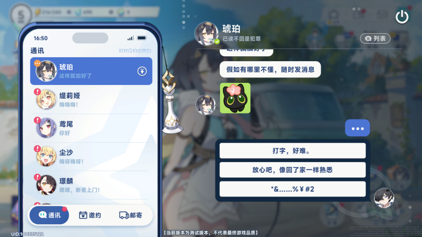 游戏的氪金机制以抽卡为核心,当玩家通过抽卡获得新角色后,可解锁与该角色的手机聊天。这种互动并不复杂的,更像是轻小说中 “角色日常小剧场” 的延伸,通过聊天,能感受角色的性格特质,让角色不再只是战斗的工具人,更增添了一份陪伴感。