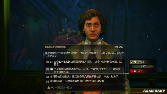 《天外世界2》的任务与故事设计非常成熟,虽然还达不到《新维加斯》的网状任务设计,但跑腿途中玩家经常能“以小见大”。简单来说,许多任务NPC在对话过程中,都存在一些因“缺少关键信息”而无法得知具体内容的选项,让人非常好奇之前是否在任务或探索中错过了一环线索,导致无法解开这段对话。