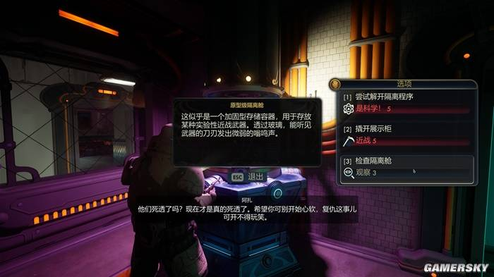 技能就是“近战”、“说服”、“黑客”之类代表角色能力的指标,一项技能等级越高,就能在流程中解决难度更高的障碍。但关卡的设计也覆盖了多方面的技能导向,很少存在“只有一种解法”的设计。好比当角色的“观察”等级够高,就可以直接在墙面上发现暗格的存在,而不需要在终端上通过“黑客”技能解锁它。