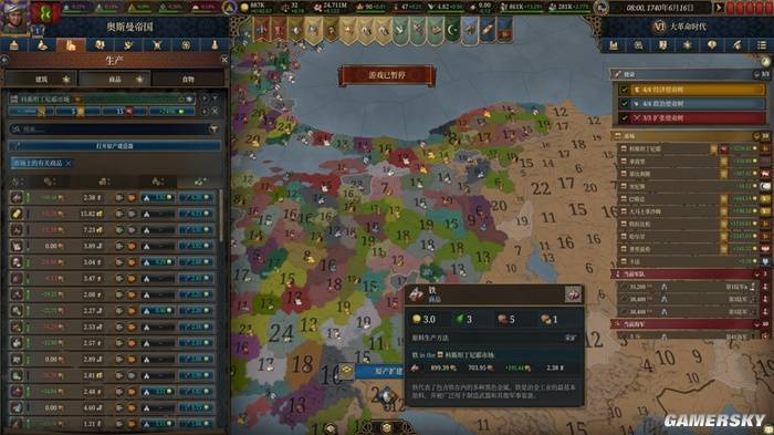 《欧陆风云5》还增加了类似《维多利亚》的商品与人群需求系统,如果你想充实国家的经济实力,那么只需要理清原材料和产出的关系,然后一边造利润高的建筑、一边缺啥补啥即可,当然你也可以考虑把它们完全交给系统自动来做。