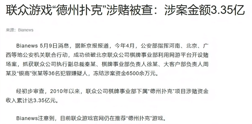 然而,成也棋牌,败也棋牌。2018年,在与韩方资本分手后不久,联众旗下棋牌事业部因涉赌被查,不仅股价大幅下跌,部分游戏被责令停运,公司经营也受到严重影响。