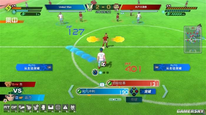 当然了,你也可以选择躲避对抗,将球传出去,但这样一来,你就无法获得“士气”——它是用来释放必杀技的资源,唯一的获取途径就只有集中模式下的对抗,而且无论胜败都可以增长。一旦士气足够,你就可以用必杀技来过人或抢断,它们会给你提供巨额数值增益,如果对方选择不放必杀,那么他基本就只有失败的份儿。