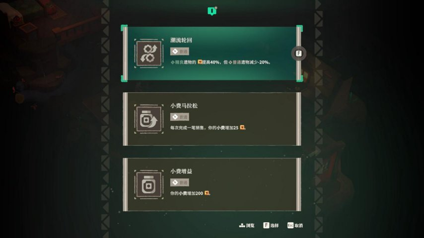 二代商店最大的变化是加入了商店 perk 系统,当顾客满意度填满进度条后,就能解锁临时加成,比如提高最终售价、保证特定品类物品获得额外小费,甚至是是触发稀有 buff 。这样一来,卖货不再是单纯的定价然后出售的循环,而是需要策略性地积累客户满意度,再搭配合适的加成实现利润最大化。作为一个经营游戏爱好者,我真的太爱这个环节了,每次看着金币源源不断地流入口袋,那种满足感无法言喻。