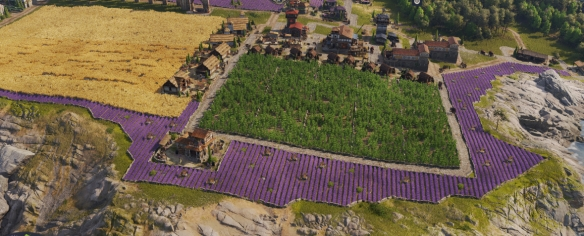 制作组大力宣传的双省玩法,笔者以为就是“扩大版的岛屿贸易”。拉丁姆作为罗马帝国腹地,延续了经典《纪元》的稳健建造体验,土地平整、资源充沛,适合搭建基础生产链;而阿尔比恩则是一片充满挑战的凯尔特湿地,大面积沼泽覆盖岛屿,玩家无法沿用罗马式建造逻辑,必须先利用沼泽资源(如芦苇、鳗鱼)满足居民基础需求,后期还可解锁排水系统改造地形。