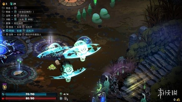 动作类肉鸽,最不容忽略的便是战斗系统。与前作不同,本次的主角,冥王哈迪斯的女儿墨利诺厄是一位女巫,因此本作的战斗系统引入了蓝条的设计。