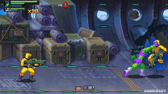只不过本作关卡中的花样,细究起来还的确不少。它有时会提供几波从不同道路上冲击玩家的虫群,有时则会有不断追踪玩家从头顶予以打击的激光炮,当你在车顶与敌人对殴时,也要注意不同高度下向你飞驰而来的广告牌……它既有一些坐电梯前行,需要你在密闭空间内持续面对接连不断敌人的场景,也会在有的路段上给你放置激光炮,让你操作它们直接把对面的敌人全部射穿。