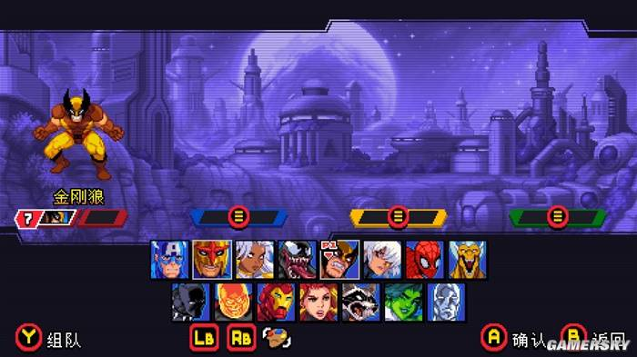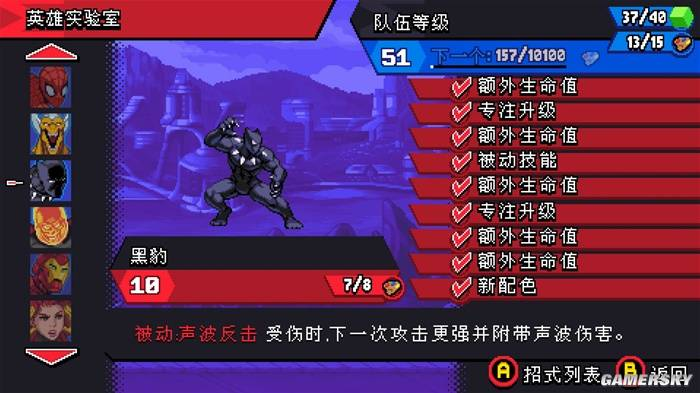 所以《漫威宇宙入侵》各位超级英雄间的差异设计,在横版清关游戏里绝对是最高的那一档。而为了让玩家们能更好利用到这庞大的英雄阵容,本作还设计了一个协同系统——你可以选择两名英雄共同出战。