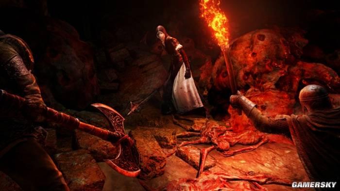 相比之下,另一个新角色送葬者则完全是暴力输出的代表。送葬者的初始武器是槌,拥有力量和信仰双A的补正。她的技艺“恍惚”,开启后可以在持续时间内提升攻击力等各项属性。恍惚有两种释放方式,除了普通释放外,还可以通过长按技能键额外消耗所有的绝活量表,换来各项能力的进一步加强。