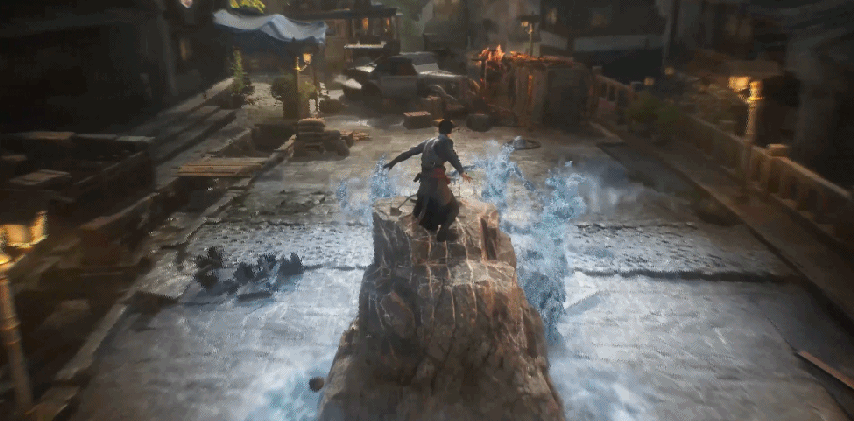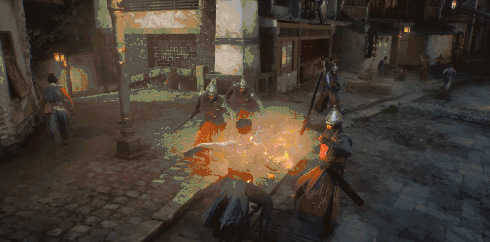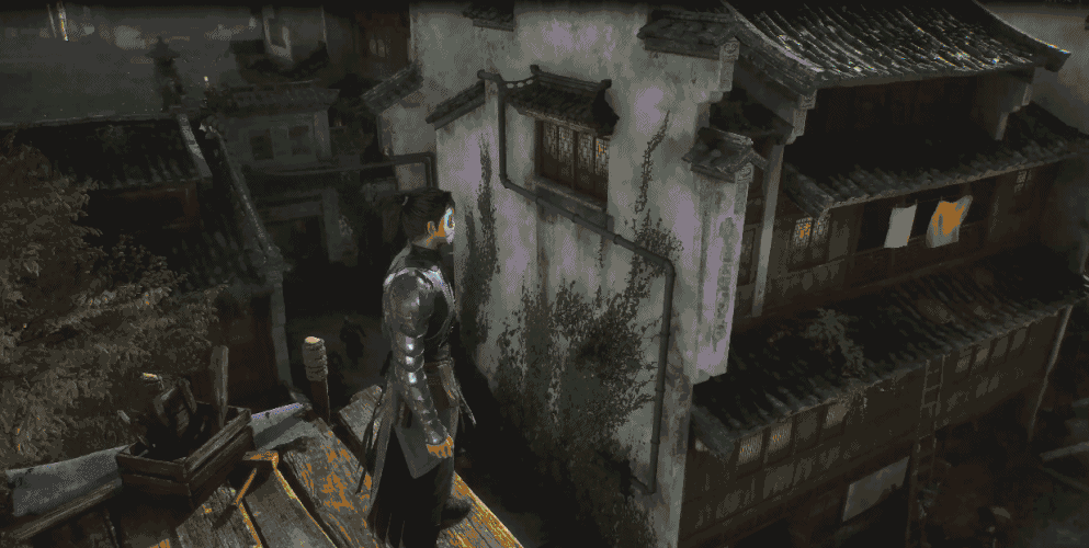 而且,你能明显地看出游戏融入了部分潜行玩法,玩家可以操控角色在各种建筑物上飞檐走壁,甚至能通过一些交互来蒙蔽敌人的攻击,多少令人有些幻视《刺客信条》的场景。但本作又不会显得“大而空”,你能看到PV中的建筑物是可以进入的,当玩家闯进平民NPC的屋子时还会触发他们的不同反应与动作。
