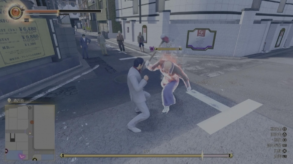 我操控桐生一马与峰义孝对战时的感受,是他的动作太过干净,让我觉得他比许多精英敌人更好打。可当我在外传中真正上手峰义孝,使用他的动作模组去打别人的时候,我的第一感受是:原来打人不留手的感觉这么爽。这时我才明白,峰义孝说的“别看我这样,其实挺厉害的”,原来说的是真的。