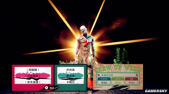 这种风格化的处理也延伸到了游戏的UI和各个系统之中。例如游戏的据点“最后一夜”使用了像素风格的俯视角,就像FC版的《合金装备》一样。玩家可以在这里进行升级加点、种植之前提到的僵尸宝可梦,甚至还能在NPC那里炸猪排,或者进行长达100关的“Galgame”问答游戏。