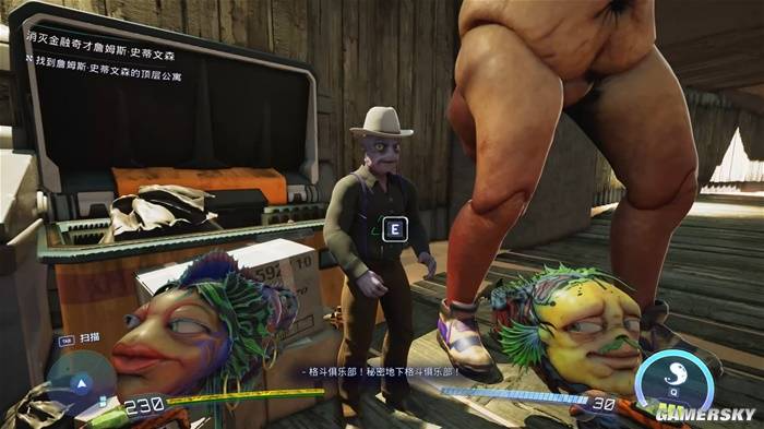 更诡异的是,游戏里还存在一群喜欢人类的外星人,他们为此举办了“人类展”。看着那些外星人戴着粗制滥造的人类头套,模仿着人类的行为。我寻思这不就是外星人里的“人类控”吗?此种身份互换带来的错位感,也正是《高能人生》最擅长的黑色幽默手段。