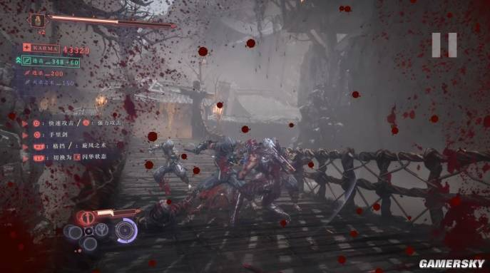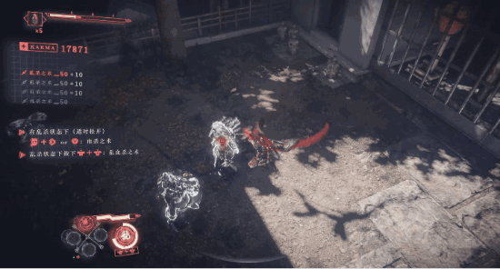 和前作中“慢速强力”的镰刀相比,八云的镰刀在普通形态下的灵活程度堪比本体中的双刀,附带的各种离手花式更让它像一个回旋镖,甚至是“法器”。常规的攻击中就穿插有中近距离的不同动作,同样还有丰富的挑空招式,在“奴延鸟之形”的状态下单个巨型镰刀的攻击可以覆盖极广的范围,且能够远程脱手持续攻击。不仅如此,多个脱手的动作都能够对敌人产生强制位移,产生推挤和聚拢的效果,让后续的攻击可以同时打到多个敌人。这样一来,用好镰刀的强化形态,即可轻松达到高手玩家们常说的“整理敌人阵型”的效果,或许可以成为一个新手“逃课”的利器。