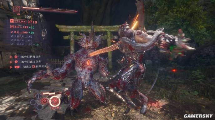 正如上面所说,新武器是DLC中的重头。八云多了“红月孤镰”,在常规形态下是一把双头镰刀,在“奴延鸟之形”的状态下则可以变成单独的一把巨型镰刀。