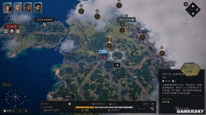 每次长休后,队伍只能获得有限的移动力,用来在大地图上跋涉。要是你顺着道路走,那么行动力消耗会比较低,但如果你踏入了森林、高山、沼泽之类的地方,行动力就会大幅消耗。