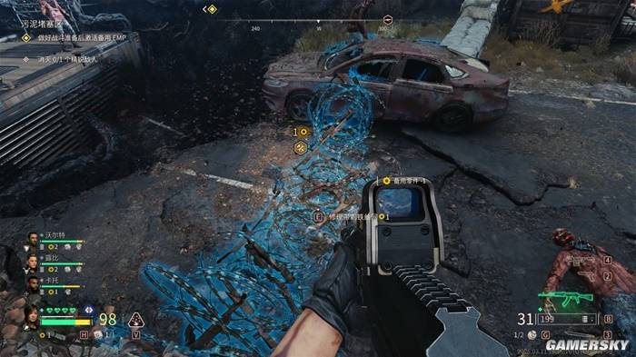 地图上除了货币、子弹、医疗包这些补给点,以及相当于复活甲的“污泥种子”外,还有不少“备用零件”,它们可以用来降低关卡最终战难度。因为每个关卡的最终战都是防守一片区域,而备用零件可以修复场地内的迫击炮、机枪、铁丝网等设备,或是开启装有榴弹枪、电磁炮的宝箱,让你将点位改造成一座更适合防守僵尸的要塞。