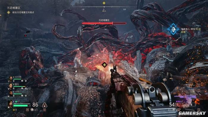 不过在视觉表现力之外,《毒液突击队》并没有通过尸潮表现出足够的交互亮点。它依然遵循着与《求生之路》相似的范式——人群里时不时会冒出几个特感,比如忽然发起冲锋,然后抓着你一顿胖揍的“蛮奴”;或是从远处将你拉走远离他人,并埋入尸潮的"缠爪"等。