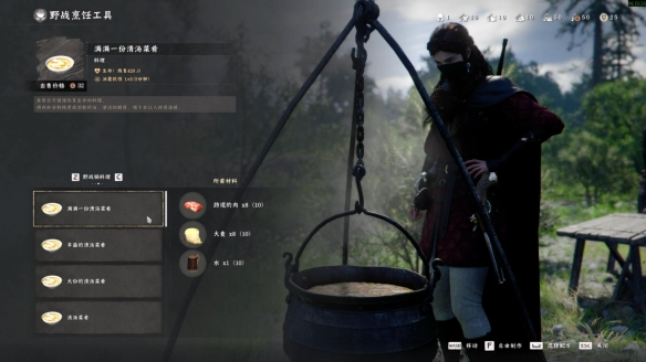 生活玩法中能产出的重要资源之一,就是回复道具。《红色沙漠》里虽有各种药剂存在,却没有传统RPG常见的血瓶、蓝瓶这类单一回复道具,取代它们功能的是各种食物。但未经加工或简单加工的食物,往往只能恢复很少的状态,想要提高回复效率的话,就必须按照食谱搭配食材制作料理,可谓是足够真实,也相当繁琐。