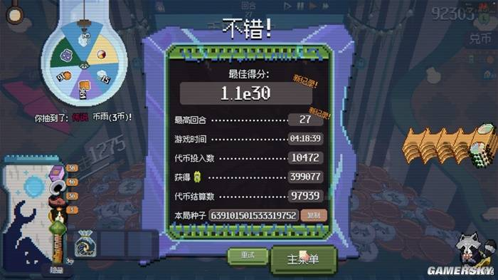 而像这样由仅仅两个币打造出来的模式,只是《浣熊推币机》许多种无限循环中的一种,还有许多比它收益更快、视觉效果更爆炸的流派等待着你去尝试。所以即便无尽模式里的目标分数已经膨胀到了一兆、一京、一垓甚至更高,你也能成功打穿。