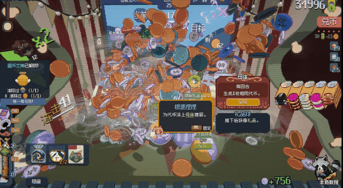 而类似《小丑牌》的镀层效果,则让这些特制币的威力又翻了许多倍。比如附上“丧尸”镀层后,它就能让接触到的所有代币,都变成和自己一样的特制币。用在钻石币、风车币等高价值货币上,瞬间就能让你一回合爆个几十万分。