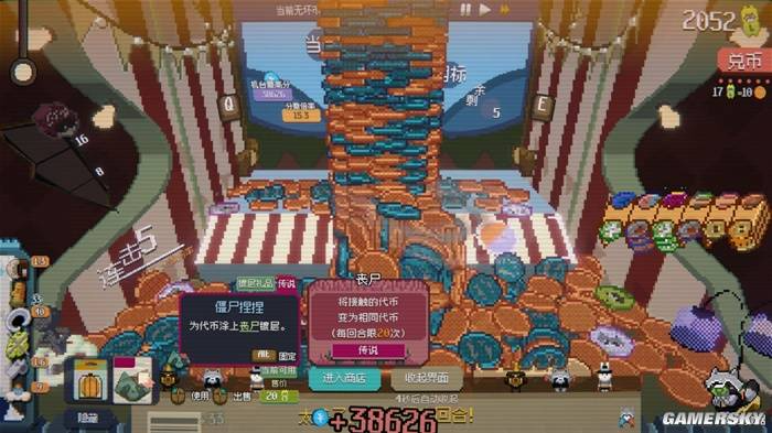 不过《浣熊推币机》真正的成功之处,在于它除了单纯的金币轰炸外,还让整个游戏融入了一个类似《小丑牌》的Roguelike框架,并且通过各种各样的创意与要素,让整个游戏具备了相当高的可玩性。