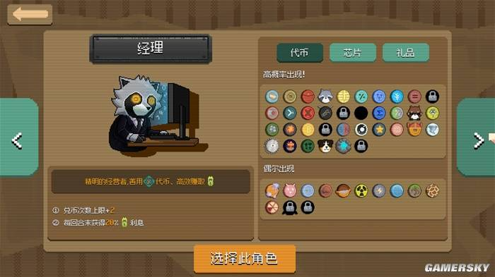 这六位角色各有自己的擅长领域。比如最基础的经理,它拥有额外兑币次数,而且手头上的票券能产生利息,这就让它比较容易度过脆弱的前期,并且利用大量票券购买尽可能多的特制币、芯片和礼品——即便你完全不清楚它们孰强孰弱,也会有胜利的机会,可以说是最适合新手的角色。