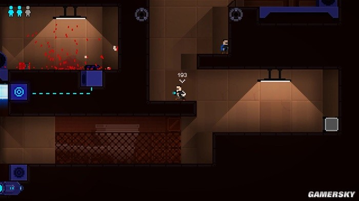 在这样一个黑暗的世界观下,玩家所面对的自然不会只是让你能冷静处理的一个又一个谜题房间。其中还会有持枪的警卫、会自爆的实验体,甚至是不可名状的缝合怪。除了解谜,玩家还可以使用克隆枪射出子弹进行攻击,也有一些考验玩家操作的平台跳跃要素。这些动作部分很好地调和了解谜的节奏,让游戏不仅限于一个又一个繁琐的机关,大大丰富了游戏的流程。