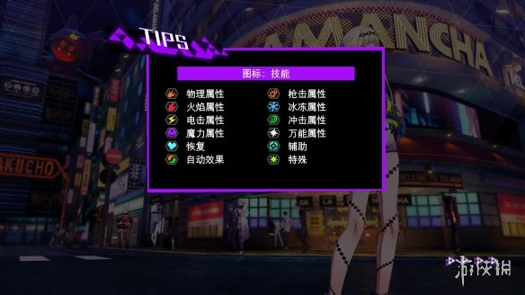 刚才我也提到过,本作的战斗系统——至少从UI和动作设计上——比起前作可能更像P5。玩家为操作的4个角色装备“仲魔”(即被驯服的恶魔),使用仲魔自带的技能进行战斗。这些技能分为物理(打击)、射击、魔法(各种异常状态)、火、电、风(冲击)、冰以及万能8种,彼此之间存在明显的克制关系。