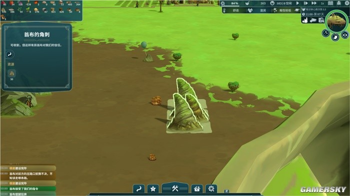 为了完成这项任务,我需要通过建造探索建筑“搜寻驿站”来从外界获取更多的资源。在这个类似于《冰汽时代》探险队的机制中,玩家可以向大地图上的特定地点派遣队伍,以获取翁布背上没有的铁矿、沙子等珍稀资源,或是招揽新村民。此外,在探索的过程中,玩家还需要时不时为探险队处理一些突发状况。面对未知的机器,你会选择强行启动,还是敬而远之?面对急需食物与水的其他部落,你是选择伸出援手,分享食物与水,还是找个理由转头就走?