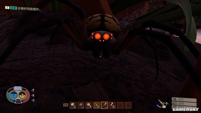 我印象最深刻的无疑是跟一辆五菱宏光一般大小的蜘蛛,它不仅外表丑陋骇人,战力也十分强劲:远能喷吐蛛丝,近能致命三连击,而它每次盯上玩家时,还会同时播放出十分惊悚的音乐,让游戏画风一转,瞬间变得恐怖起来。在游戏初期,我遇到它时总是仓皇逃窜,一个不小心就会被它啃咬致死。