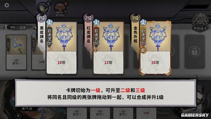 另外,《弈仙牌》也有与自走棋相似的“麻将”机制——将两张相同的卡牌叠放在一起,就可以升级成更高级别的卡。每张卡最多可以升级到三阶,即需要4张相同的基础卡牌。