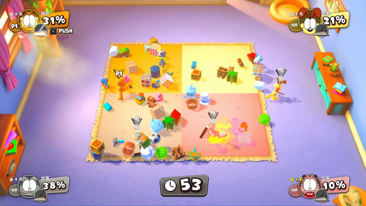 也许,多人体验会更好的一点——毕竟,有着小游戏集合的底子,跟朋友一起互动会产生化学效应也说不定。但一想到《加菲猫千层面派对》不能自定义按键……不就是找几个人跟你一起坐牢,太折磨了。