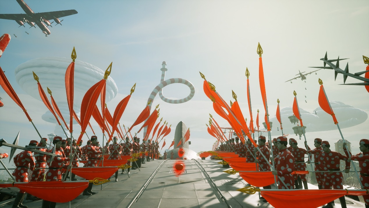 《原子之心》向我们展示了一个光明而强大的苏联,不是通过横亘欧亚大陆的2.7万颗核弹头,而是通过完备的基建、光鲜的大道还有蓬勃的人民。政府在飞天的岛屿上修建宏伟的广场与行政楼,人民可以自由支配富余的生活物资,培养工作之外的兴趣爱好。